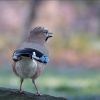 Der Eichelhäher Zum Abflug bereit mit geöffnetem Schnabel,