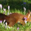 Auf Wiesen, wo Eichhörnchen laufen und springen, wachsen Krokusse.