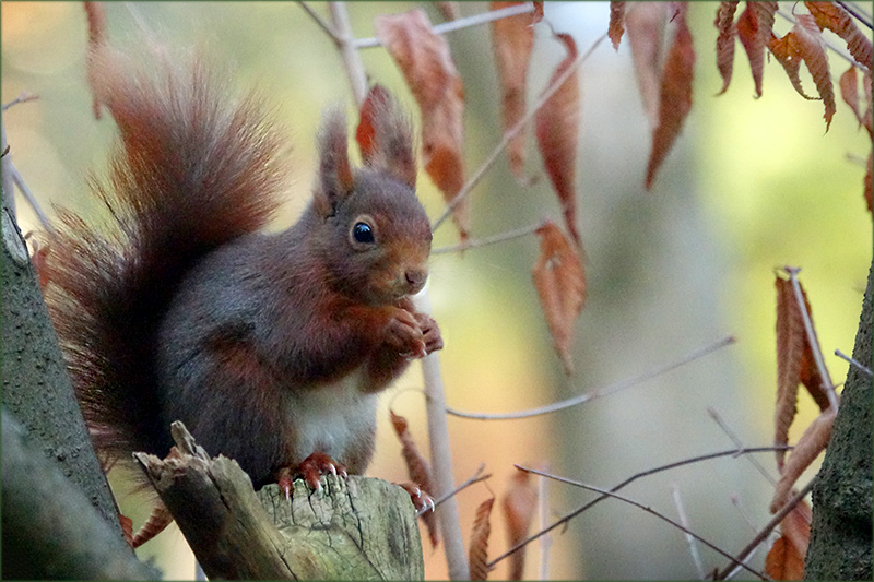 Das Eichhörnchen genießt in der freien Natur das ihm geschenkte