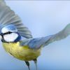 Lieblich süß schaut die Blaumeise im Flug zu uns herüber