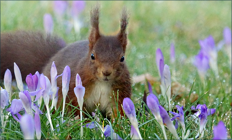 Manchmal macht die Fantasie, was sie will. Ich sah gerade ein Hörnchen mit Ohrenkrokussen und in der Wiese Hörnchenohren.
