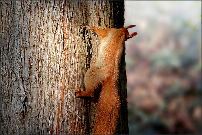 wie es sich beim Klettern mit den Krallen an der Rinde hält,