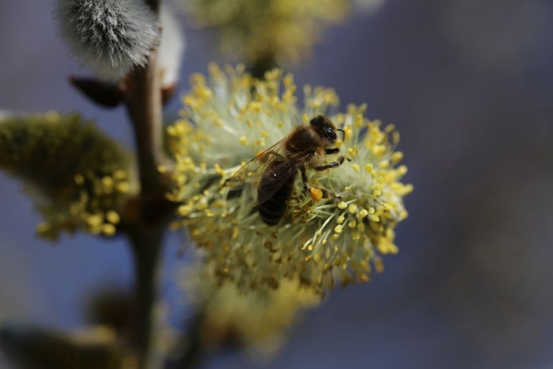 Fleißig bestäubt die Biene ihrer Natur gemäß die Kätzchenblüten