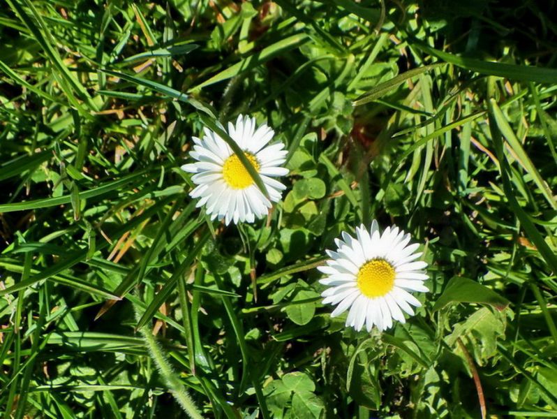 Ich liebe Gänseblümchen, dieses Duo hier im Sonnenlicht,