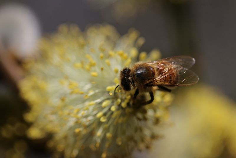 Die Biene trinkt emsig den süßen Nektar der Blüte. Es ist schön,
