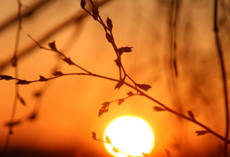 Birkenzweig mit sich entfaltenden Blättern, vor der