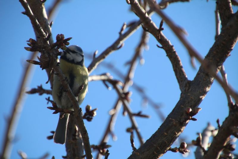 Die Meise singt ihr Frühlingslied bei herrlich einfallendem
