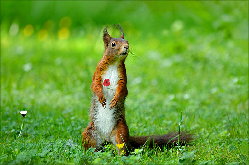 Das ist ja goldig. Hat das Eichhörnchen einen Blume geschenkt bekommen?