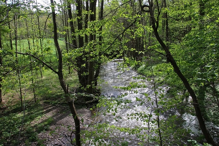 ein schöner Ort, wo das Wasser durch den Wald fließt