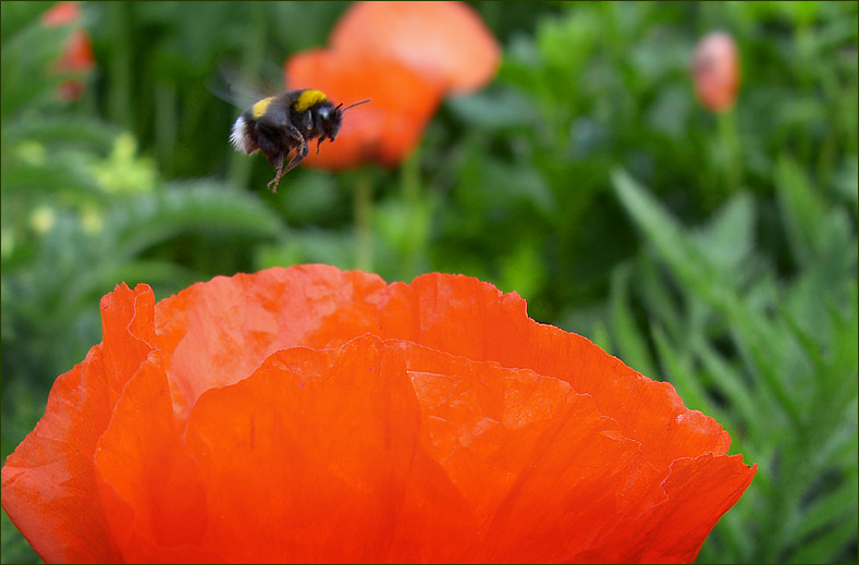 Den wunderschönen Mohn und den Anflug der Biene zu sehen, ist wirlich eine Wohltat für die Seele.