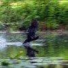 Er fliegt aus dem See, leider etwas unscharf, weil ich die Kamera nach rechts leicht in seiner Flugbahn mitschwenkte