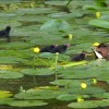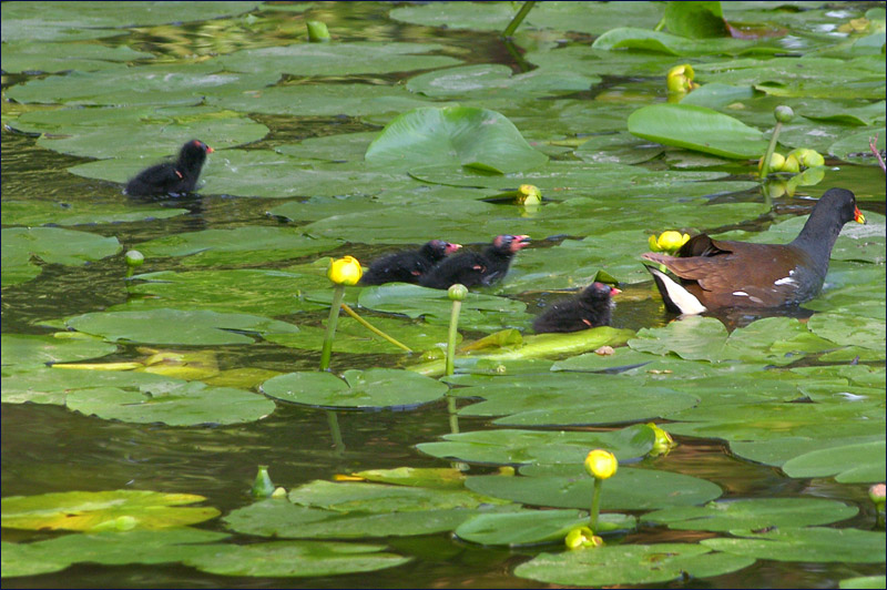 Ganz frisch geschlüpfte Teichhuhnküken