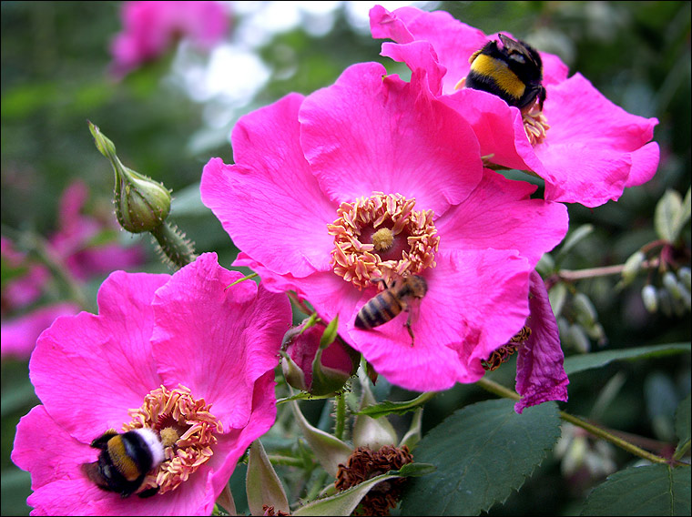 Hummeln und Biene verstehen sich gut, jeder hat eine Blüte und sind happy. Viele Grüße