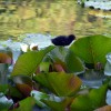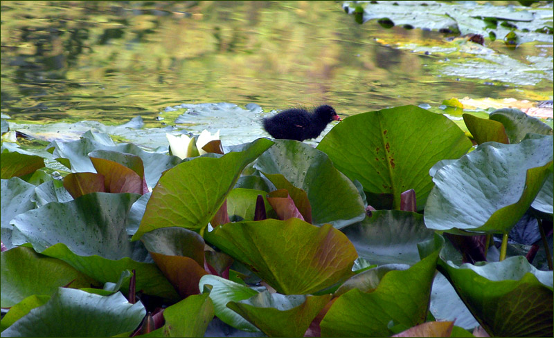 Von der Mutter entfernt auf Entdeckungstour. Die Mutter beobachtet aber alles genau und schwimmt nach einigen Minuten zum Küken, damit der Kontakt nicht abreisst...