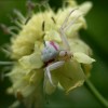 Das ist eine Krabbenspinne. Ich weiß es zufällig, weil ich mal einen Traum hatte und mir eine weiße Spinne über die Stirn lief. Da habe ich nachgesehen, was es bedeutet und habe sie entdeckt. (Ob es diese Spinne war, weiß ich nicht. Wollte nur mal wissen, ob es weiße Spinnen gibt. Viele Grüße