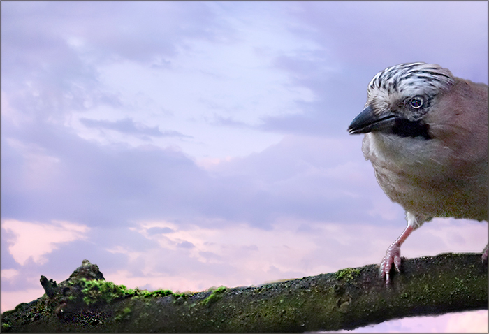 Schaut euch mal den malerischen Himmel an, spricht der Eichelhäher