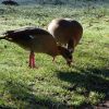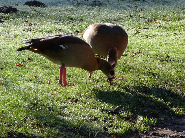 Auch die Nilgänse genießen das Futter und die wärmende Sonne.