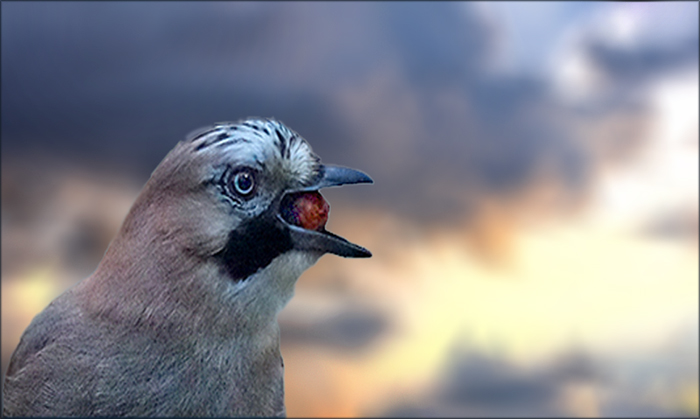 Ich frage mich, ob er dann zunächst die Nuß wieder im Schnabel hält oder