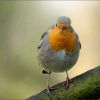 Das süße Rotkehlchen schaut aufmerksam in die Kamera. Sehr schöne Momente, draußen in der Natur.
