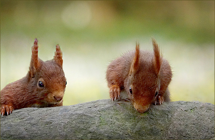 Also das nenn ich jetzt mal so herzlich, zwei Eichhörnchen zusammen aktiv ,wirkt sehr lebendig, die Sinne werden eingesetzt ,sei ganz lieb gegrüßt Sylke