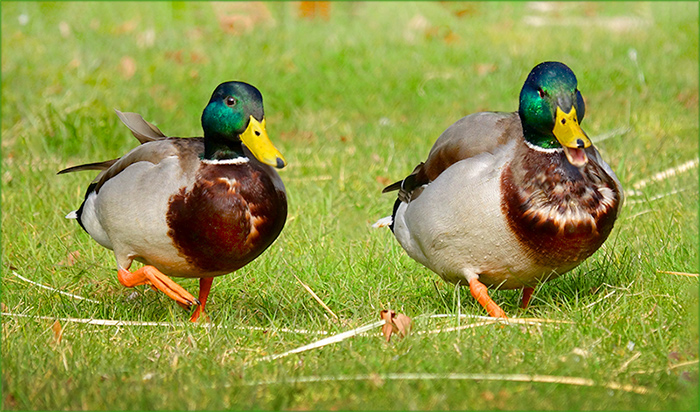 Der Schnabel des Erpels rechts im Bild