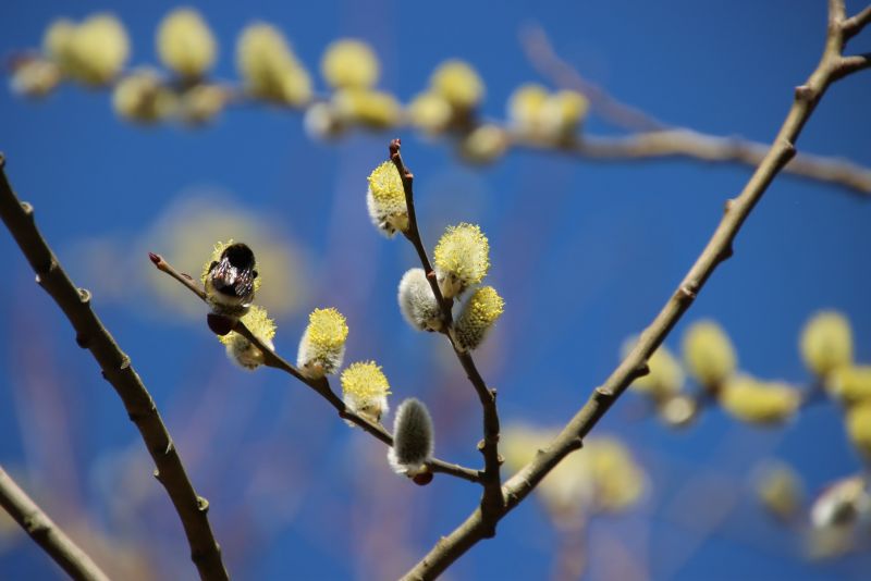 Wunderschön diese Kätzchen, für die Hummel ein gedeckter Tisch und der blaue Himmel trägt es in unsere Herzen,