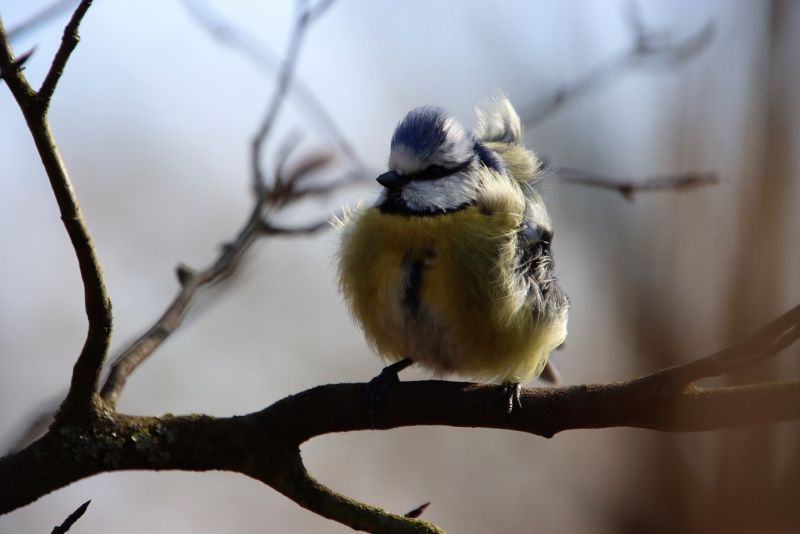 Wie süß sie da sitzt in der Frühlingssonne und im Frühlingswind, auf dem Ast, ihrem Zuhause, sie weiß sich vor der noch kühlen Luft zu schützen, die Natur gab ihr alles mit auf den Weg um ein glückliches und gesundes Leben zu leben und die Natur gab ihr die Seele um zu fühlen, dieses wunderbare Leben inmitten dieser wunderbaren Schöpfung. Keine Meise käme jemals auf die Idee alles um sich herum verändern zu wollen, weil ihr Instinkt sagt, dass es so sein muss wie es ist und so ist sie glücklich mit dem was ist und wie es ist. Sie freut sich dennoch über jede liebende Zuwendung der Menschen, deren Herzen offen geblieben sind für diese Schönheit genauso wie sie und noch mit den Tieren darin übereinstimmen.