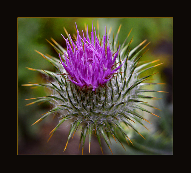 Die Distel ist ein stacheliges Pflänzchen mit einem zarten Kern. Sie bedeutet Zähigkeit, Gesundheit und Lebensfreude. Disteln sind immer umgeben von Schmetterlingen, Käfern, Insekten und Vögeln, z. B. den Distelfinken (Stieglitz), daher kommt auch ihr Name.