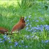 Wiese, Blumen und Hörnchen.