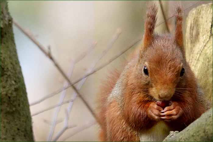 Es ist immer wieder erstaunlich, wie gut sie die Nüsse mit den Krallen halten können. Mit ausreichend Kraft, denn beim Nagen wirken relativ große Kräfte.