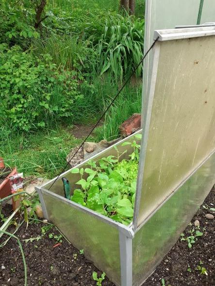 Die sonnenblumen - runtergefallenes aus dem vogelhäuschen - sind heuer so aufgegangen und ich dachte: das lass ich mal so, denn wer weiß ... die nacktschnecken mögen die jungen sonnenblumen ja besonders und vielleicht lassen die meine salatpflanzl in ruhe