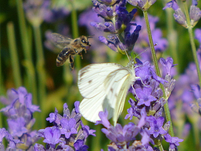 Biene und Kohlweißling im Lavendel