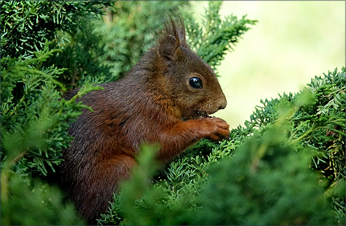 Ein ungewöhnlicher Ort, aber die Lebensbaum"nadeln" passen gut zum Eichhörnchenfell.