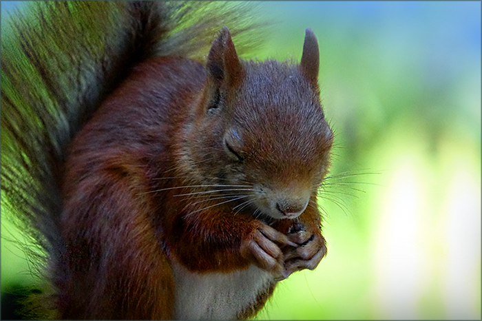 Wie es die Nuss genießt. Ein Eichhörnchen zum Liebhaben