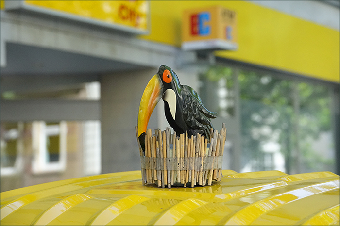Vielleicht dient der Vogel auf dem Autodach auch der Kühlung im Innenraum ...