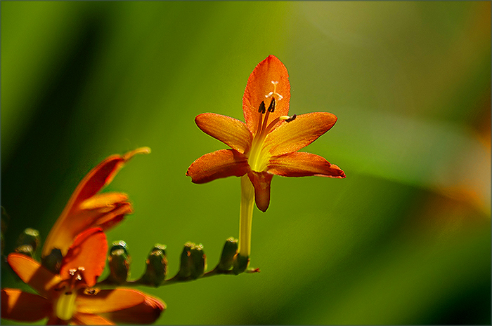 "Montbretien (Crocosmia) sind eine Pflanzengattung in der Familie der Schwertliliengewächse (Iridaceae). ... Die nur sieben bis zwölf Arten sind nur südlich der Sahara bis in die Capensis und auf Madagaskar beheimatet. Benannt ist die Gattung nach Antoine François Ernest Coquebert de Montbret (1780–1801), einem (deutsch-)französischen Naturwissenschaftler."