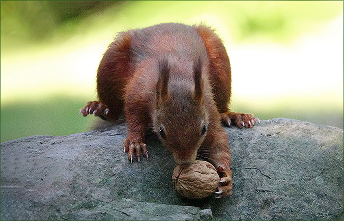 Am Stein oben kann man natürlich leichter Fotos auf Augenhöhe des Hörnchens machen.