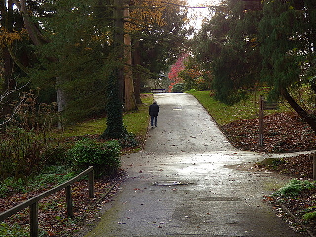 Die relativ breiten Asphaltwege sind nicht in erster Linie dafür vorgesehen, daß sich Menschen in größeren Blöcken zum Spaziergang begeben, sondern daß man Fahrzeuge zur Pflege durch den Park fahren kann.