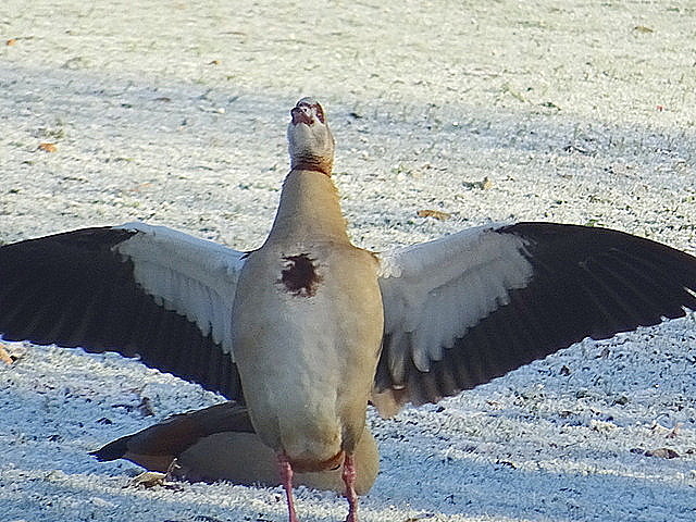 Wenn sie (oder er) so aufgerichtet dasteht, hat der Brustfleck natürlich schon eine beeindruckende Imponier-Wirkung.