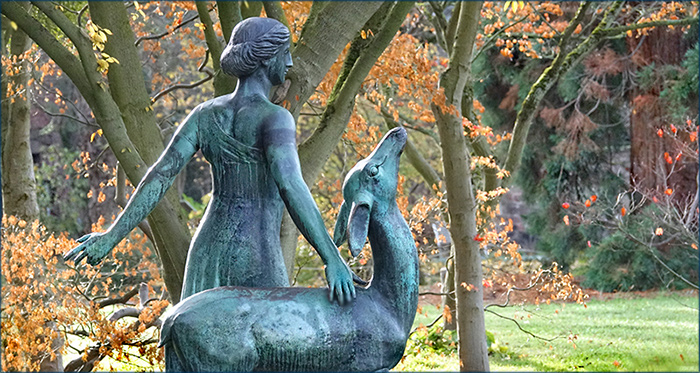 Die Skulptur "Junge mit Pferd" befindet sich vor dem