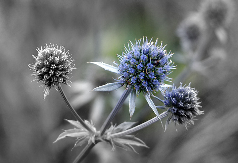 Wundervoll die Distelblüten mit dem grauen Hintergrund, dank Picasa