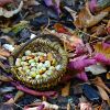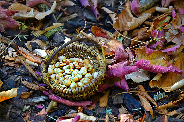 Am Waldrand im Laub gesehen. Ich habe das Körbchen mitgenommen und auf den Stein gestellt.