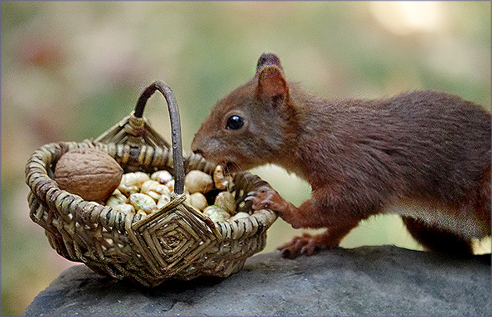 Vielleicht kommt die Nuß ins Rutschen, wenn der Korb noch stärker durch das Körpergewicht des Hörnchens nach oben gedrückt wird...