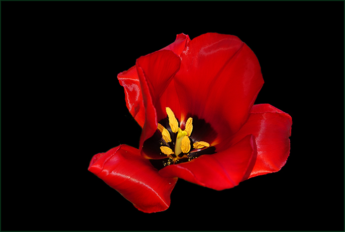 Nicht die allbekannte typische Tulpenform von der Seite als Kelch. Gerade das macht den Reiz des Fotos aus.