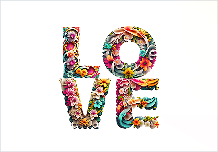 Die Schriftgestaltung habe ich mit dem neuen KI-Programm von Adobe firefly gemacht. Die Blumen wurden mit der künstlichen Intelligenz in den Buchstaben nach meinen individuellen Vorgaben automatisch generiert und eingefügt.