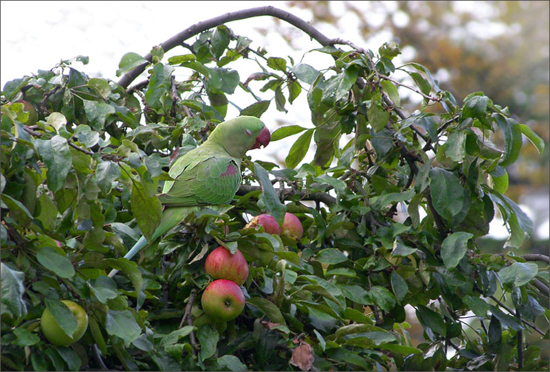 Hier im Alten Land gibt es zwar viele Apfelbäume, aber Papageien darauf habe ich noch nicht gesichtet...