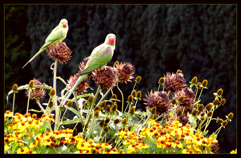 vor einigen Jahren sind einige Papageienpaare aus dem Zoo entflogen.