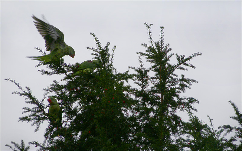 Letzte Nacht träumte ich, dass einer dieser wunderbaren Papageien sich in den Wald um Buxtehude verirrt hatte. Ich freute mich, nun auch hier wenigstens einen davon bewundern zu können...