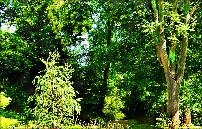 Jung und alt, groß und klein, Licht und Schatten, verschiedene Baumarten mit ihren individuell gewachsenen Ästen.