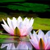 Wenn man Glück hat und die Blüte entfernt von den Blättern über dem Wasser steht,